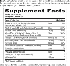 1. Full-Spectrum Formulation: Double-check the Supplement Facts Panel to ensure that it has all 8 essential B vitamins.