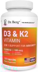 Dr. Berg was started by a board-certified chiropractor with over 30 years of experience. Despite his deep passion for simplifying health through supplements and educational resources, there wasn’t an explanation as to why this supplement combined the vitamins and minerals that it did… Not only does it contain an extremely high dose of D3 per serving (10,000 IU), but it also contains a whole slew of other vitamins and minerals including vitamin K2, B6, magnesium citrate, zinc, MCT powder, and oxbile powder. While it may be effective for those with a vitamin D deficiency, some customers have reported feelings of nausea, dizziness, and an upset stomach. That said, Dr. Berg’s D3 & K2 Vitamin comes in third on our list of Best Vitamin D Supplements of 2026.